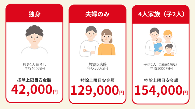 控除できる金額の上限は、年収や家族構成などによって異なります。