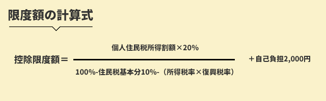 ふるさと納税で控除できる控除限度額は、画像の計算式で求めることができます。