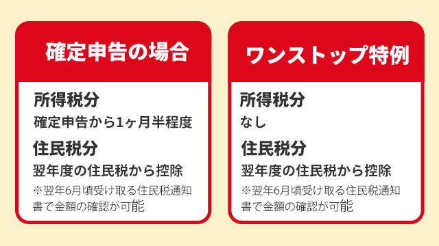 ふるさと納税後に確定申告をした場合と、ふるさと納税ワンストップ特例制度を利用した場合で少し異なります。