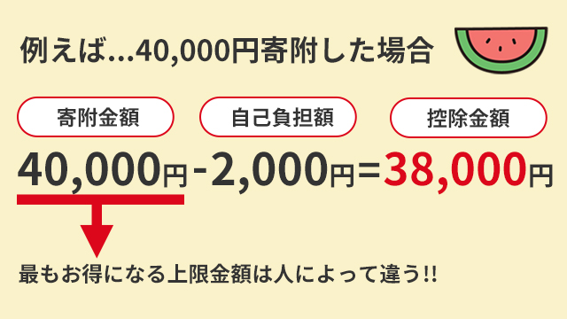 2,000円以上の寄附を行った場合、自己負担額の2,000円を除いた全額が所得税(復興特別所得税を含む)及び個人住民税から控除されます。
